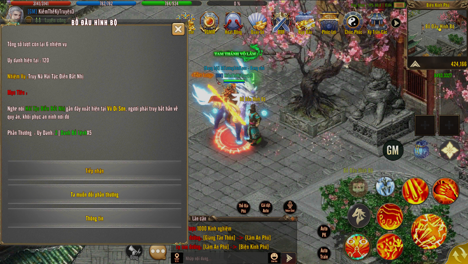 Phần Thưởng hoàn thành nhiệm vụ :